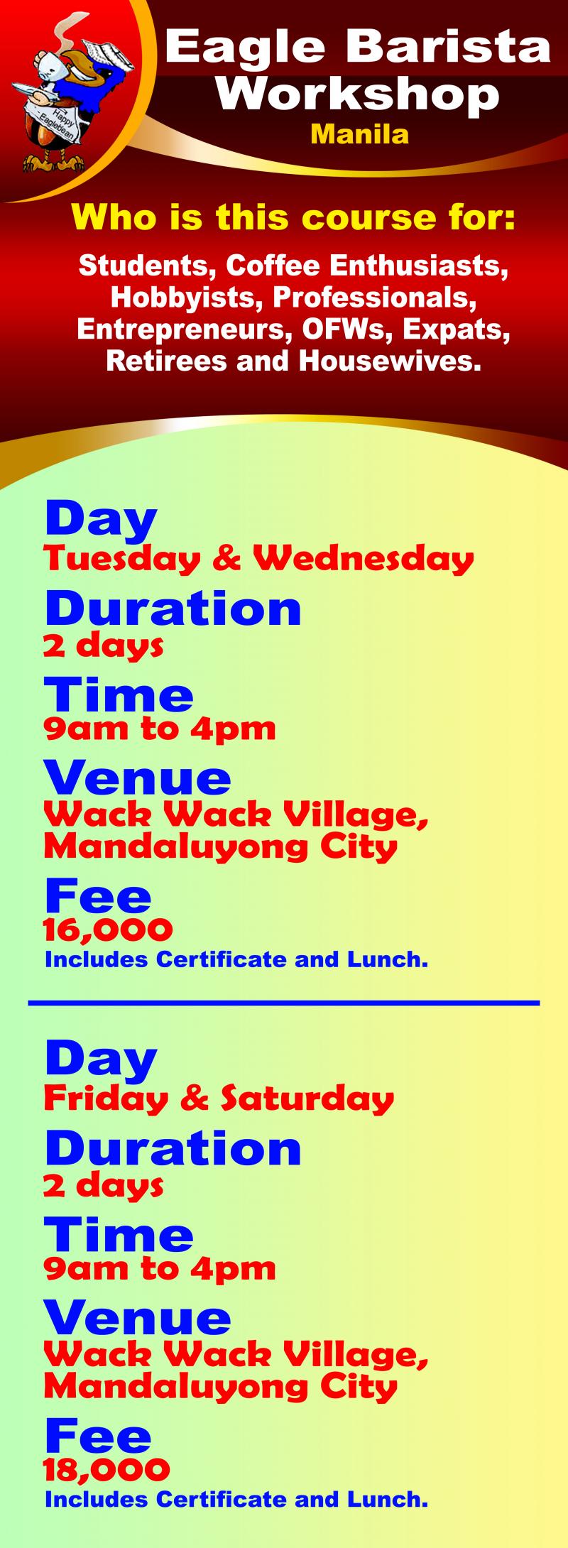 This book is available exclusively to students of the Eagle Barista Training Workshop. Student can purchase a copy of the "Barista Techniques" book at price of Php3,500.00